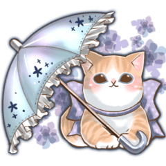 何かしら毎日使える 猫の癒しスタンプです。 ねこ、毎日、日常、普段使い、梅雨、紫陽花 6月、雨、初夏、茶々 より発売