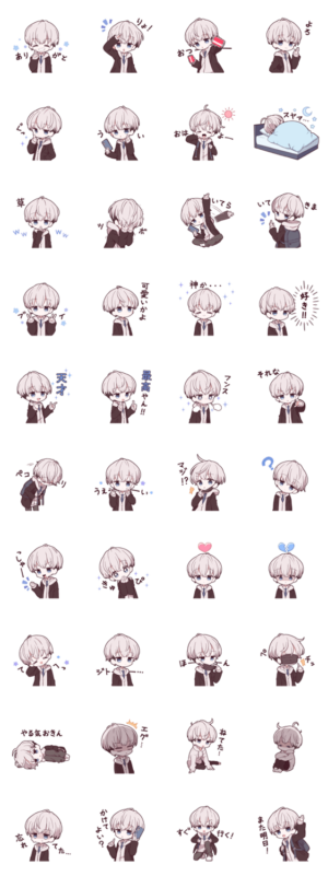 クールだけどノリのいいマッシュヘアの男の子スタンプです♪日常で使いやすいゆるい言葉使いで、家族や友達、カップルでのトークに大活躍◎