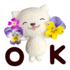 あみぐるみ白ネコ(花)スタンプです。てんじくあおい より発売
