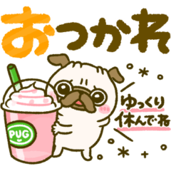 パグちゃんのぽかぽか陽気のスタンプセットです♡ 家族、お友達、大切な人へ♡体調を気遣う言葉もたくさんいれました♪ぴよたぬき より発売