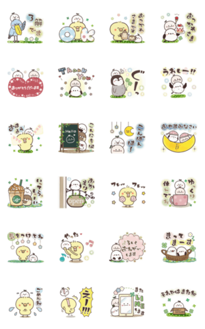まるいやつらとトリさんの毎日使えるゆる~いアニメーションスタンプです。挨拶/日常/敬語/シマエナガ/ヒヨコ/ハシビロコウ