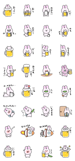 のんべえ♡シュールなミニうさぎのスタンプです。eribo より発売