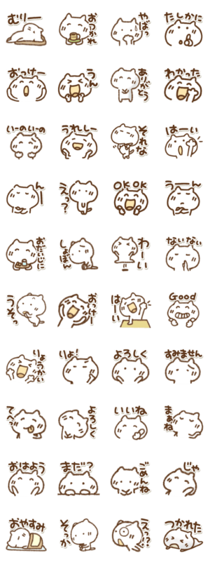 大きなねこと文字でシンプル見やすい分かりやすい。毎日使える挨拶やリアクションがいっぱいです。takopon より発売