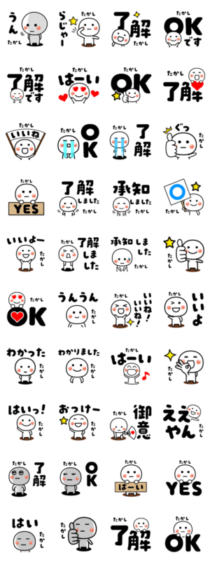タカシ/高志/孝史/孝志/尊志/孝士/崇士/隆/孝/陸/俊/崇/貴史/敬/尚/隆司/貴志/隆志/貴司/隆史など【たかし】の名前入りスタンプMIKIKUN より発売
