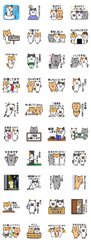 日常会話でよく使う言葉を集めたスタンプです。シンプルなので幅広く使えて便利です。ねこ/ネコ/猫/可愛い/面白い/家族/友達/仕事/毎日使える/気持ちを伝える/丁寧な言葉