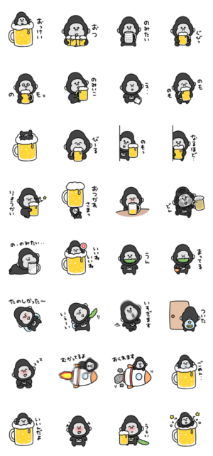 のんべえ♡シュールなミニゴリラのスタンプです。eribo より発売