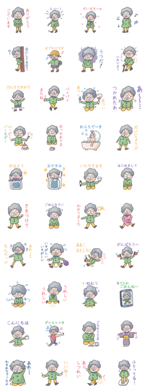 私の母が描いたオリジナル絵本「ばあばわすれてもいいよ」のばあばのスタンプです!もももわ~るど より発売