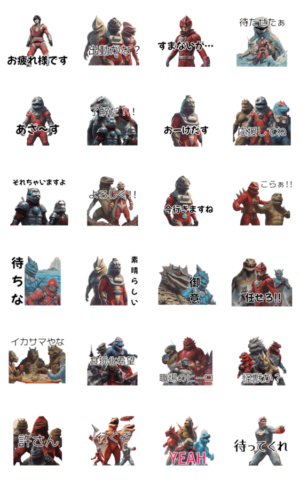 昭和の特撮怪獣と転生した鉄人ヒーロー スタンプ画像一覧