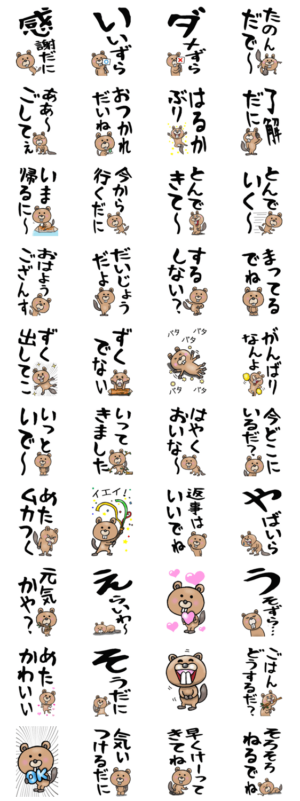文字が小さくて読みづらい方や老眼の方ための大きな文字の長野弁ビーバーちゃんのスタンプです。おじいちゃん、おばあちゃん、シニア世代の方々もどうぞ。