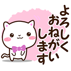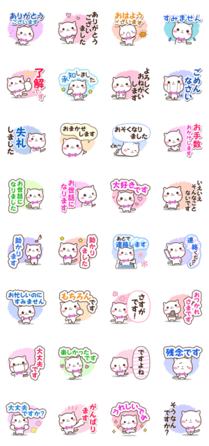 『シロネコすたんぷ』の絵文字と着せかえもあります。毎日使える言葉やあいさつのかわいい白猫スタンプです。シンプルで敬語多めの、しろねこスタンプ。【かたこ】