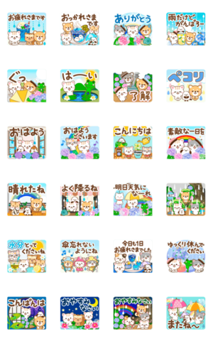 大人のためアニマルズ動く♪雨の日と梅雨 スタンプ情報