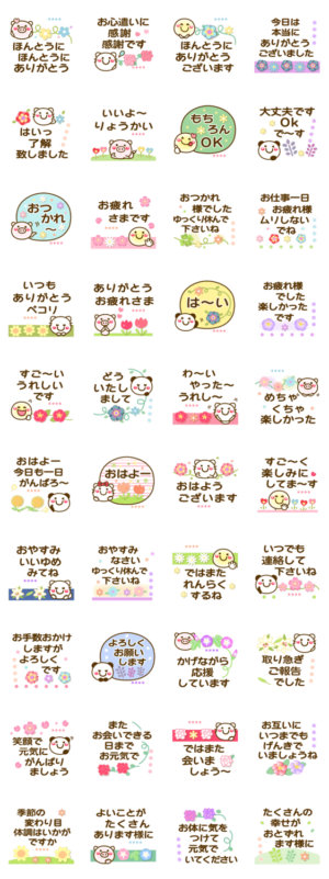 かわいい動物達の【もらってうれしい気持ちたっぷり】①花 長文カスタムスタンプ(お名前4文字まで)♪タメ語 敬語両方入り。誰にでも使える!パンダ ねこ ぶた❤作:usakazu1