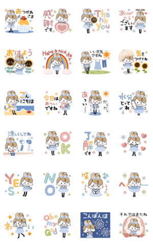 キュートなおだんごガールの夏に使えるスタンプです。 爽やかな夏のメッセージを涼しげに彩ります。NAKAYUKA より発売