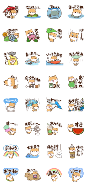 柴犬の『ちびシバ』のかわいいイヌスタンプ。梅雨のじめじめした時期から暑い夏にかけての可愛い茶犬スタンプ。豆柴・秋田・北海道犬・赤犬好きの方にも。【かたこ】かたこ より発売