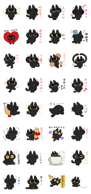 かわいい黒猫ちゃんの使いやすいスタンプです。 チャームポイント:2足歩行・2等身・おなかポヨポヨのべ子 より発売