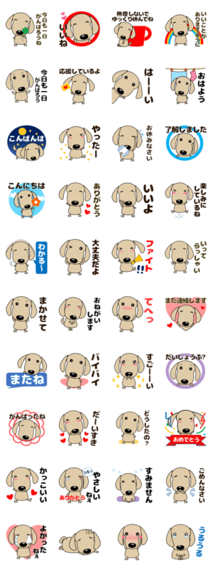 日常で使いやすい基本の言葉&思いやりやさしい・癒しがぎゅっと詰まった優しいイヌのスタンプ。ゆるい犬,ダックス好きスタンプ。字が見やすくシンプル 友達,家族,仲間,仕事