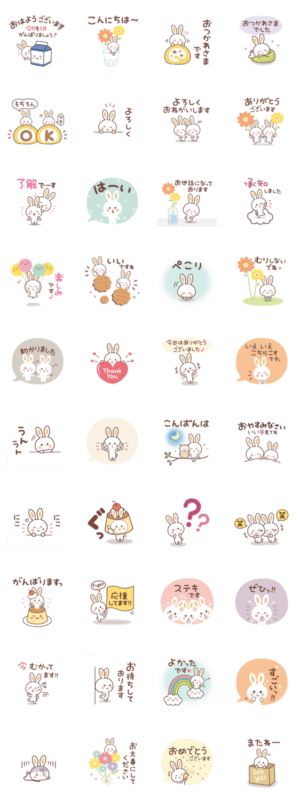 ふわっとした「うさぎ」のやさしい敬語スタンプです。