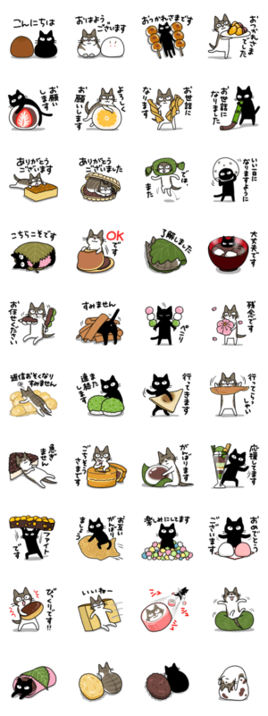 黒猫のナノとキジシロ猫のきなこ。 和菓子で敬語。ぱるぱ-る より発売