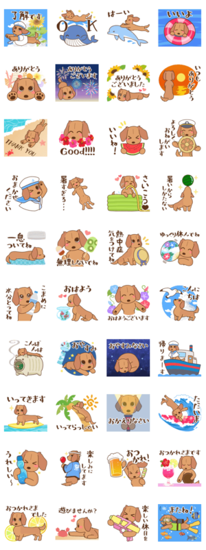 ダックス大好き季節・夏◆レッド スタンプ画像一覧