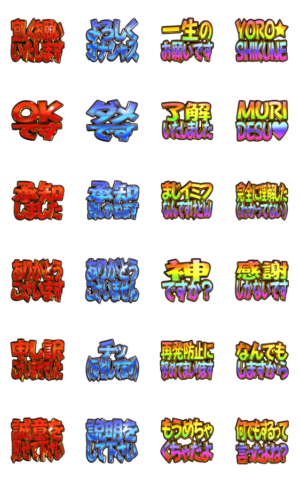 ✨飛び出す文字【動く】激しい返信12敬語 スタンプ画像一覧