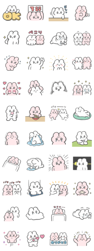 どんなときでも誰にでも使える最強のスタンプです。文字かなり少なめ。ウサギ/シンプル/使いやすい/文字なしスタンプ/地雷系/量産型/シュール/オタク/ヲタク/oroninet
