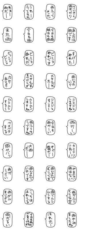 雨の日や梅雨の時期によく使う吹き出し。 スタンプ画像一覧