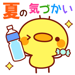 夏に使える気遣いスタンプ入り!サッと返事が出来る可愛いヒヨコの飛びだすスタンプです♪