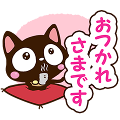 『小さい黒猫』のていねいな言葉のネコスタンプ。かわいいクロねこがかわいく敬語で伝えます。家族、友達、お仕事、ママ友に、絵文字と着せかえと合わせてぜひ。【かたこ】かたこ より発売