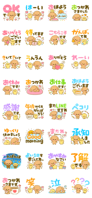 ふわふわもこもこ♡トイプードルのカラフルで可愛いふきだしスタンプです♪会話の始まりと終わりに役立つ言葉や日常会話で毎日使える言葉をあつめました♪