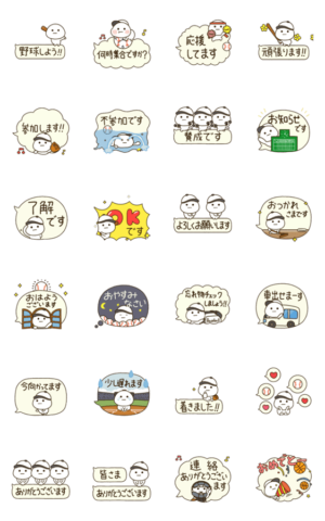 グループラインでも便利な連絡スタンプ☆少年野球,野球部,母,父,子,家族,友達,会社,クラブ,部活,チーム,先輩,後輩の皆で使いやすいをそろえましたでござる。