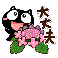 黒猫【くろちー】のかわいく元気な、梅雨の時期から暑い夏にかけての使いやすいクロネコスタンプです。可愛い、ねこ好きな方にぜひ。【かたこ】アジサイ・かたつむり