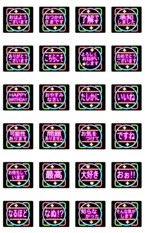 ズームなデカ文字「ネオン風2」 スタンプ画像一覧