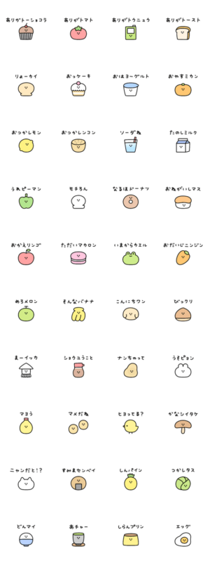 食べ物多めのダジャレスタンプ、小さめで使いやすいです。