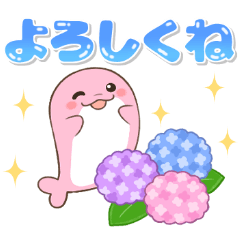 青、ピンク、白の3匹のイルカたち。日常会話から雨の日や暑い日に使える言葉も。毛玉ピストル より発売