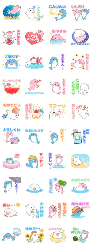 3色イルカの夏スタンプのダウンロードはこちら↓