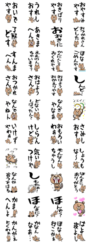 文字が小さくて読みづらい方や老眼の方ための大きな文字の京都弁ビーバーちゃんのスタンプです。おじいちゃん、おばあちゃん、シニア世代の方々もどうぞ。