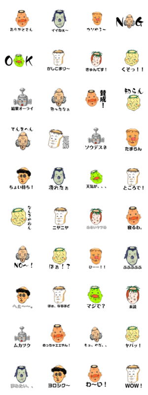 河童のおじさんとその仲間達がLINEスタンプで登場! 五十音順で使えるワードが勢揃い!! (コレは僕が落書きで描いたオリジナルキャラクターです)