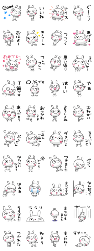 ふんわかウサギのポップタッチ風。第21弾。「やぁ」「おねがい」から「まじですか・・・」まで。心豊かに日常メッセージを届けよう。家族、学校、お仕事でも。