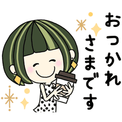 Happy Girl - 緑×ショートボブ part7 スタンプ画像一覧