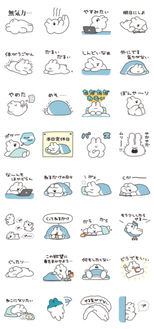 やる気のないうさぎのスタンプです。ナポリ より発売