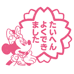 文字入りのハンコ風ミッキーのスタンプです。会話になじむ便利なスタンプとなっています!