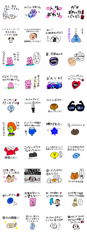 人生おわりすぎワロタスタンプです。シンプル/かわいい/煽り/負け犬/大人/恋愛/彼氏/すきぴ/酒/メンヘラ/ねこ/犬バブルガム より発売