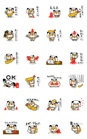 エビフライとタコウインナーと、柴犬パンダ スタンプ画像一覧
