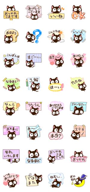 『小さい黒猫』のかわいい便利で使いやすいネコスタンプ。ちいさいクロねこが可愛く返事をします。友達、お仕事、ママ友に、絵文字や着せかえと合わせてぜひ。【かたこ】かたこ より発売