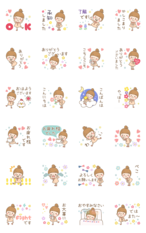 動くスタンプ!おだんごヘアーの女の子。毎日使えるスタンプが盛り沢山。可愛い・年中使える・ガール・使いやすい・カワイイ・かわいい