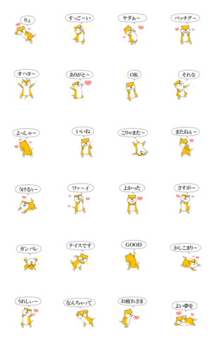 「激しく尻尾をふるイヌ」シリーズ 柴犬のハッピーなスタンプを集めました。