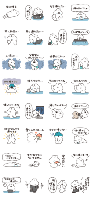 家に帰りたいうさぎのスタンプです。ナポリ より発売