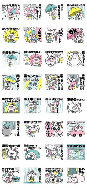 うさもかちゃん雨&梅雨時期用+*♥!!毎日使える挨拶+使える言葉の詰め合わせ♥!!うさぎ/家族/ママ/仲良し/友達/仕事/夫婦/挨拶/雨/梅雨/初夏/雷/女子/連絡用/乙女系