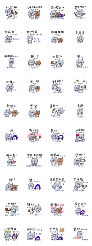 覚えたての定番韓国語フレーズで、堂々と話しかける灰色キャット。ほとんど読みがなと日本語訳付き!/ハングル/KPOP/韓国ドラマ