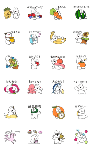 あざとかわいいちびウサギがフルーツや野菜と一緒にトークをカラフルで賑やかに盛り上げます!日常で使える言葉やリアクションたっぷりで、友だち・家族・会社の同僚に♪